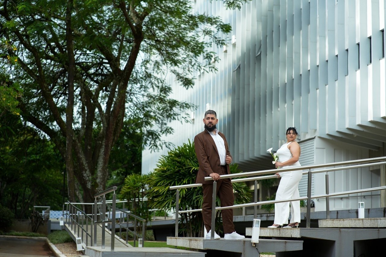 A celebração da nossa união será conduzida por um celebrante e preparada com todo carinho, com foco na nossa história de amor. A cerimônia acontecerá em um jardim, pontualmente às 17h30, com duração máxima de 45 minutos. Pedimos, por gentileza, que se organizem para chegar com pelo menos 30 minutos de antecedência, para se acomodarem com tranquilidade e não perderem nenhum momento especial.